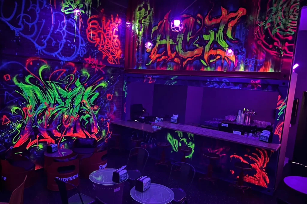 Enter a world of blacklight-powered fun at Portals Entertainment Center! Play glowing mini golf, battle in laser tag, explore the arcade, enjoy food and drinks, and unwind in our 21+ lounge.